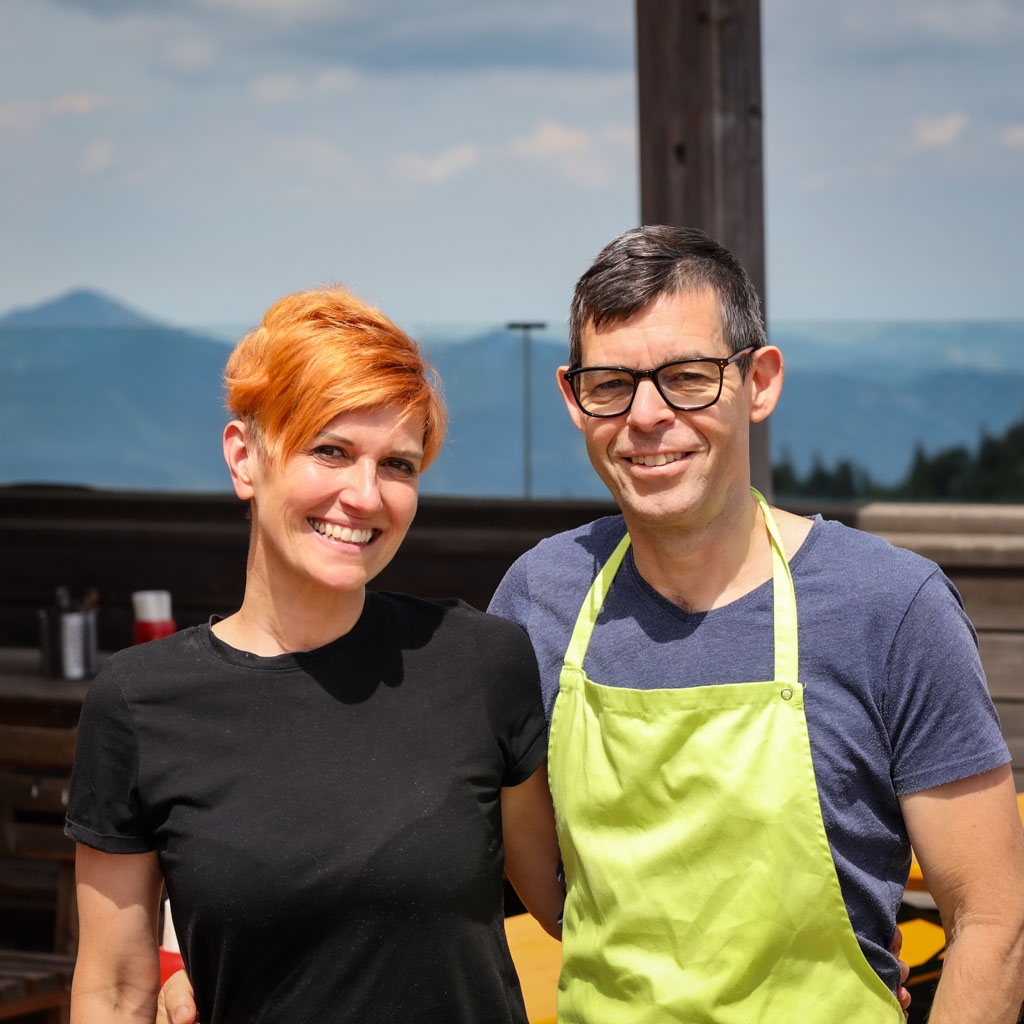 - Bild 2: Sigrid und Peter Skov auf der Terrasse vom Annaberger Haus, 1:1, Download-Link