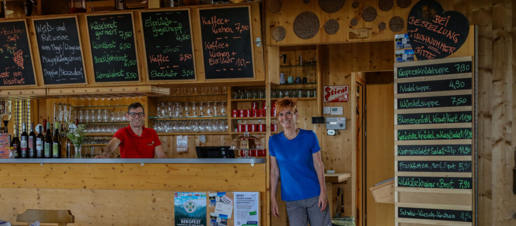 - Bild 3: Sigrid und Peter Skov bei der Bar im Annaberger Haus, 16:7, Download-Link